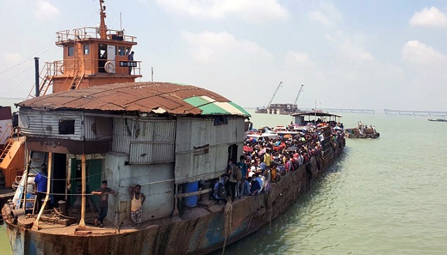 অতিরিক্ত যাত্রী নিয়ে ছেড়ে যাচ্ছে যমুনা ফেরি। ছবি : সংগৃহীত
