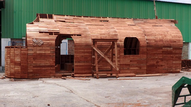 বাগেরহাটে তৈরি কাঠের বাড়ি যাচ্ছে বেলজিয়ামে
