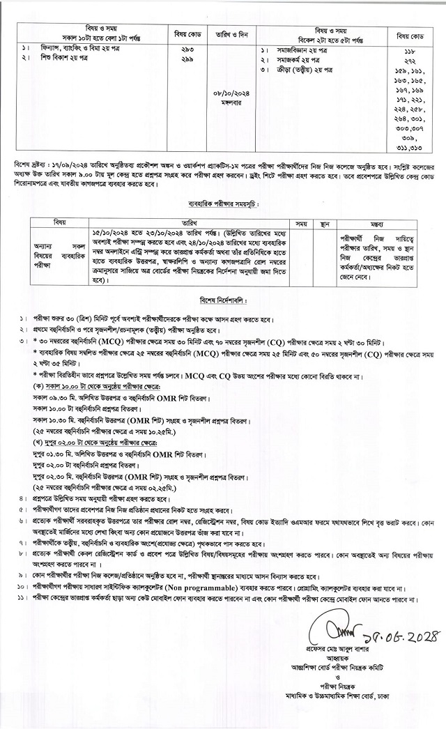 বৃহস্পতিবার (১৫ আগস্ট) ঢাকা মাধ্যমিক ও উচ্চ মাধ্যমিক শিক্ষা বোর্ডের ওয়েবসাইটে এ সময়সূচি প্রকাশ করা হয়।