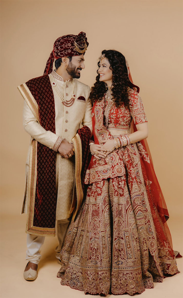 বিয়ের দিন লাল টুকটুকে লেহেঙ্গা হাতে লাল চূড়া, সাবেকি গয়নায় সাজেন গায়িকা। অন্য দিকে মিঠুন পরেন বেজরঙা শেরওয়ানি, পলকের পোশাকের সঙ্গে রঙ মিলিয়ে পরলেন লাল স্টোল। নবদম্পতিকে শুভেচ্ছায় ভরিয়ে দেন সংগীত জগতের তারকারা। যার মধ্যে রয়েছেন তুলসী কুমার, শান, দিব্যা খোসলা কুমার, জ্যাসলিন রয়্যাল-সহ একাধিক শিল্পী।