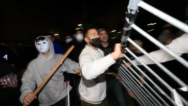 দুই পক্ষের সংঘর্ষের সময় ইসরায়েল-সমর্থকেরা বিক্ষোভকারীদের ওপর লাঠি ও ব্যাট নিয়ে চড়াও হন। শিবিরের প্রতিবন্ধকতাগুলো ছিন্ন করার চেষ্টা চালান তাঁরা। বিক্ষোভকারীরা বলছেন, সহিংসতার সময় পুলিশ ধীরে সাড়া দিয়েছে।
