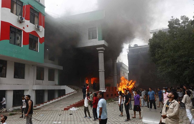 নেপালে ক্ষমতাসীন কংগ্রেসের কেন্দ্রীয় কার্যালয়ে আগুন দিলো জনতা