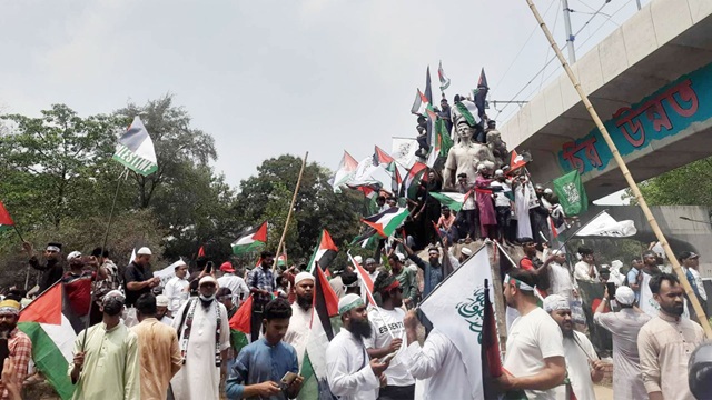 শনিবার (১২ এপ্রিল) বিকেল ৩টায় এই গণজামায়াতে শুরু কথা থাকলেও সকাল থেকেই ফিলিস্তিনের পতাকা ও প্রতিবাদী ব্যানার হাতে এসে জনতা কানায় কানায় পূর্ণ হয়ে যায় সোহরাওয়ার্দী উদ্যান।