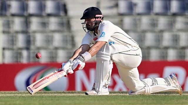 এর আগে এতবড় রান তাড়া করে জয়ের নজির নেই নিউজিল্যান্ডের। বড় লক্ষ্য তাড়ায় এদিন শুরুতেই হোঁচট খায় কিউইরা। ইনিংসের প্রথম ওভারেই বাংলাদেশকে দারুণ শুরু এনে দেন শরিফুল ইসলাম। এই বাঁ-হাতি পেসারের খাটো লেন্থের বলে খোঁচা দিয়ে উইকেটের পেছনে ধরা পড়েন টম লাথাম। ডাক খেয়ে এই ওপেনার সাজঘরে ফেরায় রানের খাতা খোলার আগেই উইকেট হারায় সফরকারীরা। লাথাম ফেরার পর কনওয়েকে সঙ্গে নিয়ে ইনিংস মেরামতের চেষ্টায় ছিলেন সাবেক অধিনায়ক কেইন উইলিয়ামসন। প্রথম ইনিংসের সেঞ্চুরিয়ান এ যাত্রায় ব্যর্থ হন। তাইজুলের ঘূর্ণিতে পরাস্ত হন তিনি! লেগ বিফোরের ফাঁদে পড়ার আগে ২৪ বলে করেছেন ১১ রান। এরপর তাইজুলকে অনুসরণ করলেন মেহেদী মিরাজও।