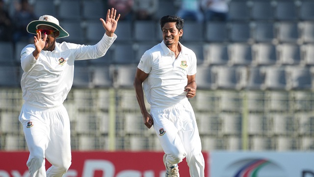 জয়ের দৃশ্যপটটা বাংলাদেশ চতুর্থ দিনেই তৈরি করে রেখেছিল। যদিও ম্যাচের আগে অনিশ্চয়তা ছিল পঞ্চম দিন পর্যন্ত খেলা গড়াবে কি না। দুই ইনিংসেই কিউইদের পরীক্ষায় নিয়েছেন তাইজুল ইসলাম। স্পিনবান্ধব হয়ে পড়া উইকেটে চতুর্থ দিন তার ঘূর্ণিতে ১১৩ রানেই ৭ উইকেট হারিয়ে ফেলে সফরকারীরা। আজ (শনিবার) প্রথম টেস্টের শেষ দিনে নেমেই ব্যক্তিগত ফিফটি তুলে নেন আগেরদিন ৪৪ রানে অপরাজিত থাকা ড্যারিল মিচেল। অবশ্য এরপর তিনি আর চোখ রাঙাতে পারেননি সেভাবে।