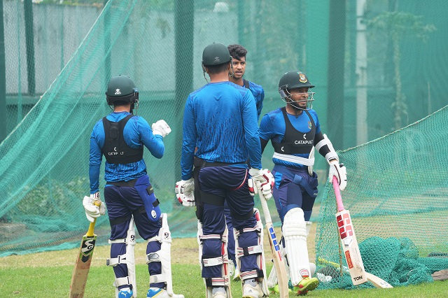 ব্যাটিং অনুশীলন করার সময় আঙুলে চোট পেয়েছেন স্পিনার নাঈম হাসান। দিনের শুরুতে বোলিং করেছিলেন তিনি। এরপর পর ব্যাটিং করতে নেটে ঢুকেছিলেন । সেখানেই থ্রো ডাউন খেলার সময় বল তার আঙুলে আঘাত করে। নেট থেকে বেরিয়ে প্রাথমিক চিকিৎসা নিয়ে ড্রেসিংরুমে চলে যান নাঈম।