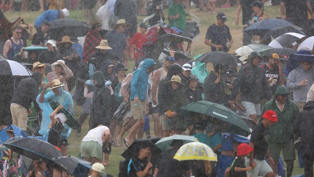 বৃষ্টির মাত্রা কেমন– সেটি গ্যালারিতে থাকা দর্শকদের ছুটোছুটি দেখলেই বোঝা যায়। মেঘ কালো করো ঝোড়ো বৃষ্টি নামতেই ফাঁকা হয়ে যায় গ্যালারির অনেকাংশ। তড়িঘড়ি করে ঢেকে দেওয়া হয় পিচও।